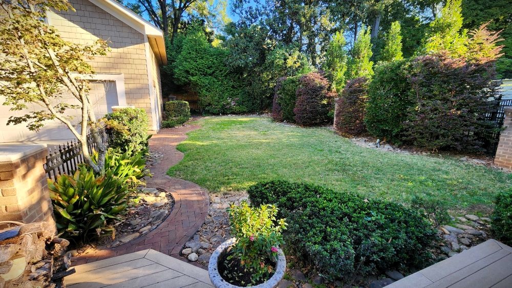 - Positive draining 0.31 acres surrounded by trees and just the right amount of Zoyzia lawn space