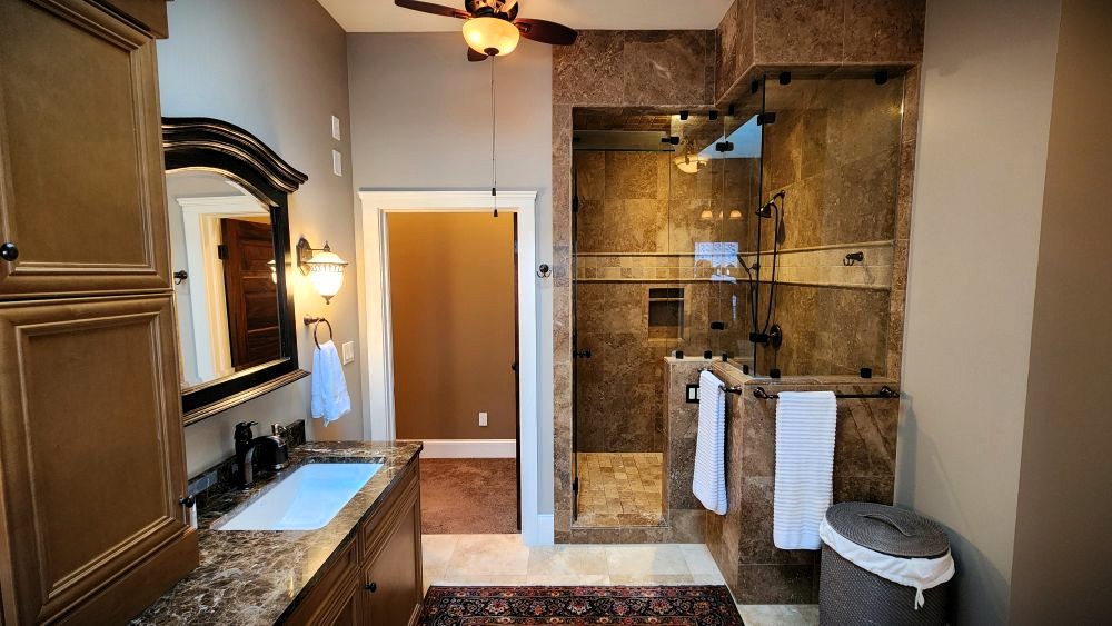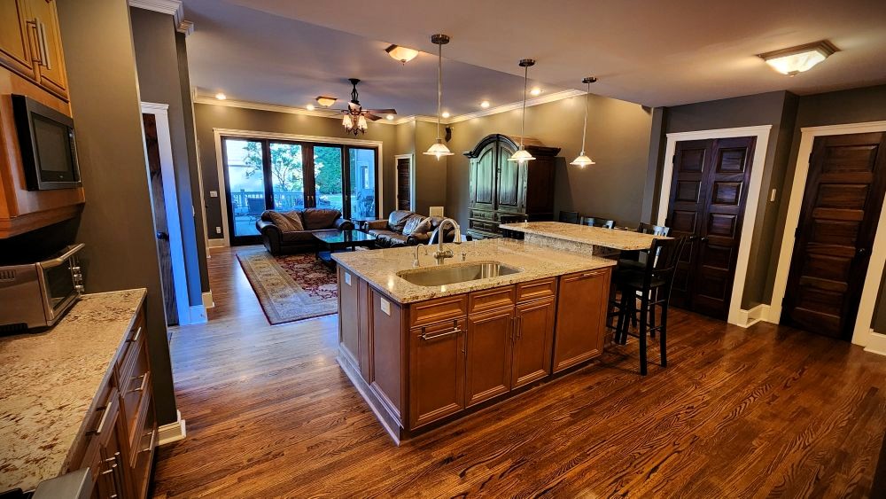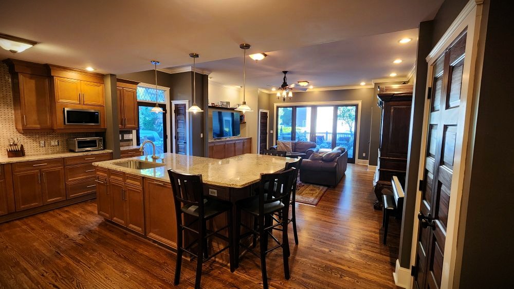 - Basement full-size refrigerator and finished wine cellar cabinets and storage space